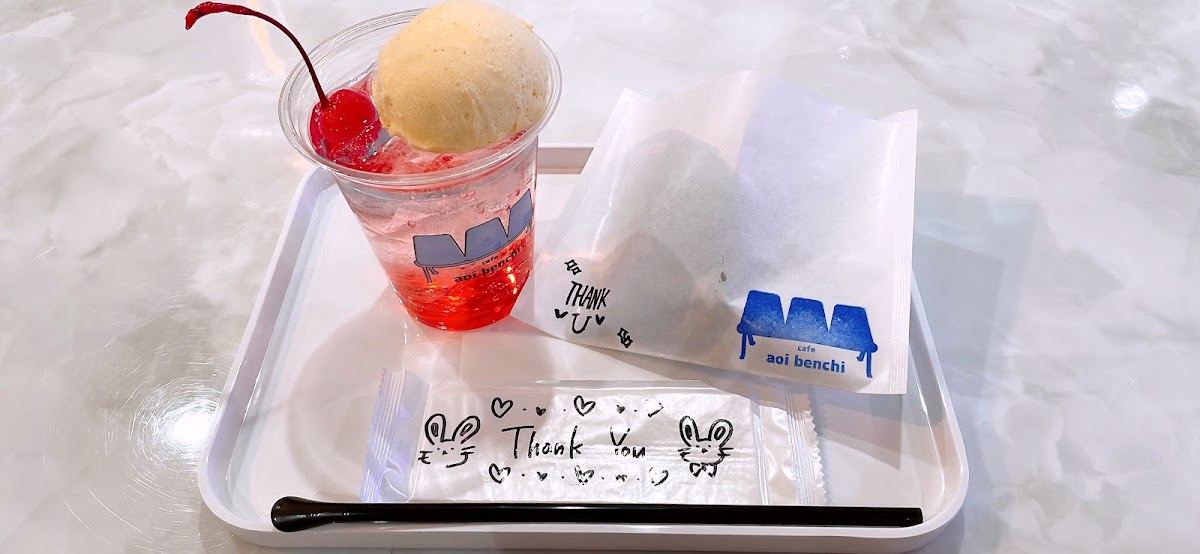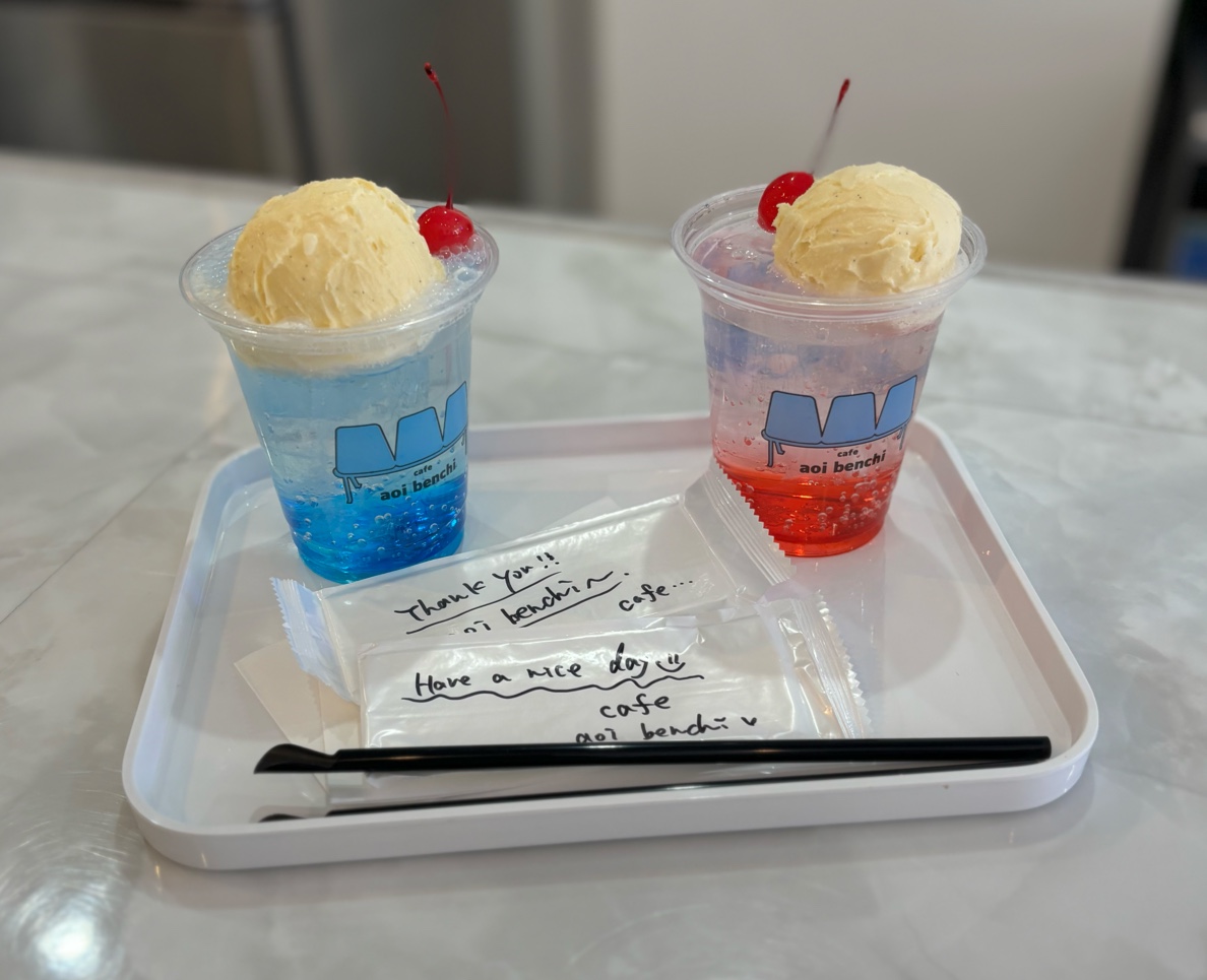 Not to be missed are the colorful, refreshing クリームソーダ (Cream Soda), a hit among visitors, leaving them with smiles and satisfied taste buds. Patrons have commented that “the drink menu is vast and colorful, perfect for those Instagram-worthy clicks.” Aoibenchi is truly a visual and culinary delight.